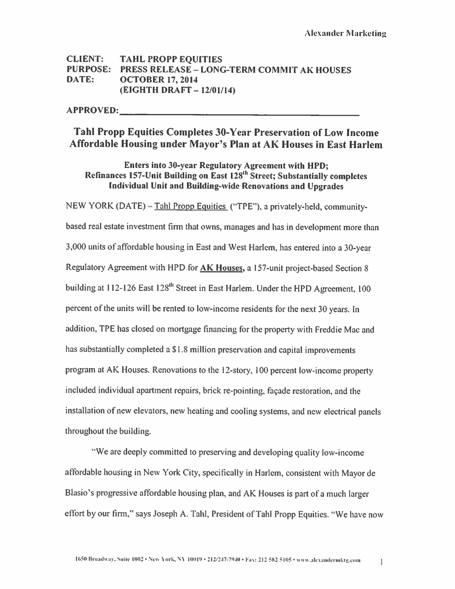 TAHL PROPP PROVIDES NEW AFFORDABLE HOUSING